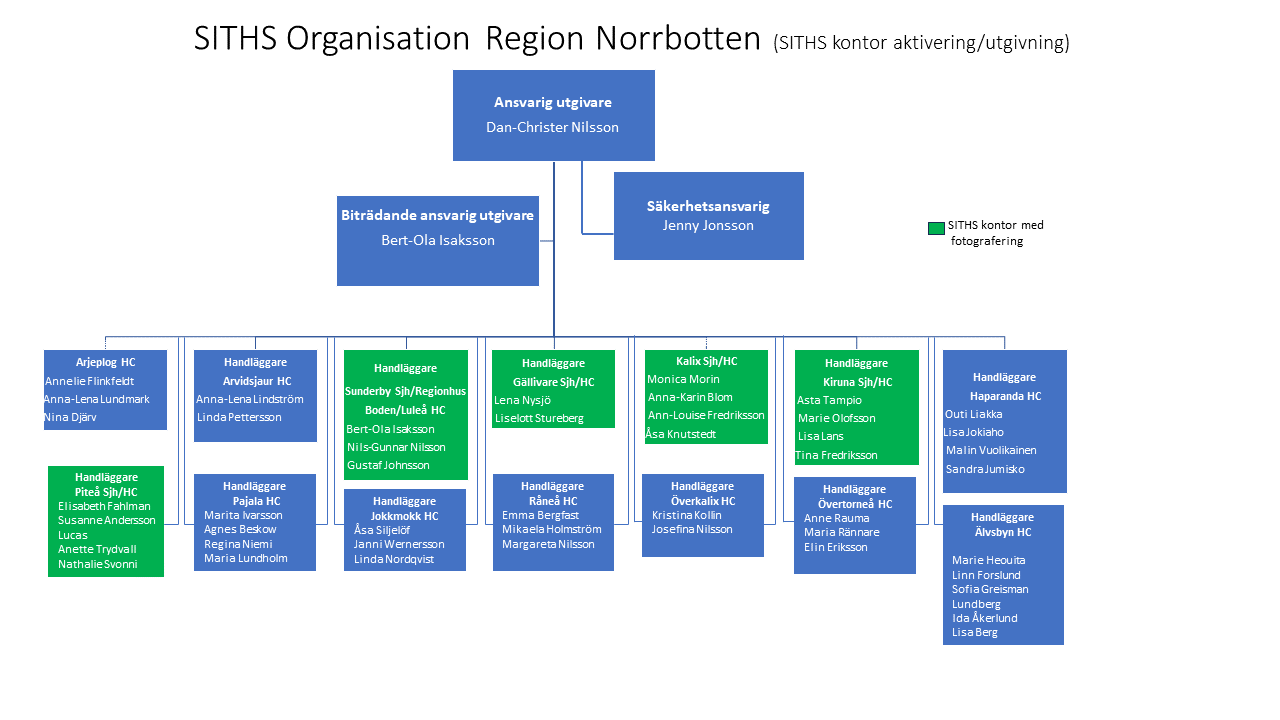 Syftet med SITHS-kort är att uppfylla nationella krav på säkerhet och identifiering vid inloggning och signering i system där patientinformation hanteras. SITHS kort med foto utgör samtidigt även en visuell identifiering av behörigheten att vistas på arbetsplatsen. För Region Norrbotten (organisationen) innebär detta :